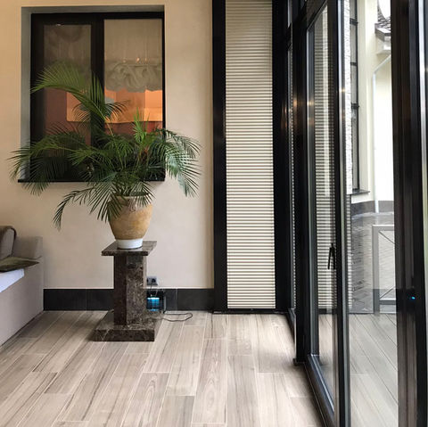Awnings, blinds and rollets dynamically shaping the light of the room.